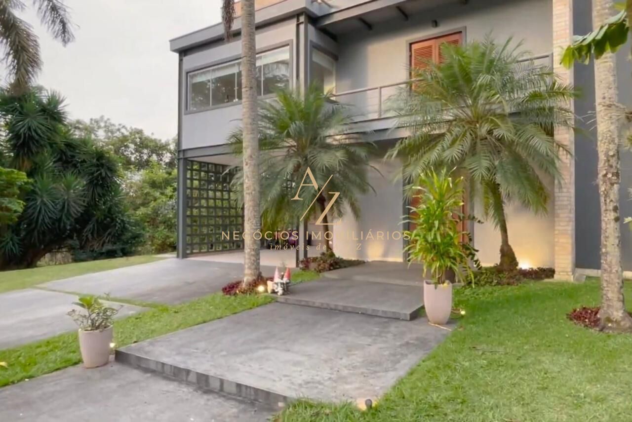 Casa moderna no Condomínio Tarumã, capa da revista Casa & Construção pelo projeto arrojado com estrutura metálica aparente e estilo industrial. São 456 m² de terreno e 421 m² construídos, conceito aberto, iluminação natural abundante, telhado novo, reforma completa, aquecimento solar para piscina, chuveiros e torneiras, garagem para 4 carros e venda mobiliada. Localizada na melhor rua do condomínio, ao lado de área não edificável que garante privacidade e vista definitiva. Cozinha planejada com ilha, cooktop, coifa Pulsar, forno e micro-ondas embutidos, máquina de lavar louça e integração total com salas. Ambientes de estar, jantar e TV integrados com ventilação cruzada, lareira dupla face e aquário marinho. São 3 quartos, sendo uma suíte master com closet, banheira e dois chuveiros, e dois quartos adicionais, um deles com marcenaria infantil Ueba Design: mezanino com brinquedoteca, escorregador, iluminação LED e móveis planejados. Todos os quartos com ar-condicionado (dois com aquecedor). Mezanino com dois escritórios funcionais. 5 banheiros no total, lavabo e suíte de funcionário independente. Lazer com piscina aquecida, sauna, área gourmet, jardim e paisagismo. Ampla área de serviço com armários e lava e seca. Condomínio com lazer completo: playgrounds, quadras, academia, lago, área verde, portaria 24h e mercadinho interno. Localização privilegiada com fácil acesso a Alphaville, Barueri, Santana de Parnaíba, Castelo Branco e São Paulo